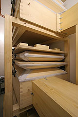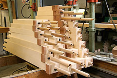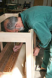 Roller board with rods (tracker action) | Stabilizing the case with bracings | If the organ needs more space, stucco has to go | Assembling the case |