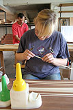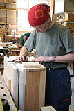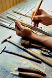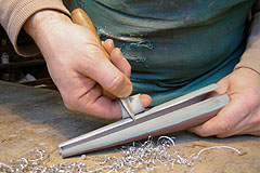 ending. The picture on the left shows the work on such a tongue. The resonator may be made of metal or wood, and it can have all kinds of shapes. The tone color and intensity will vary accordingly (c.f. Varieties of pipes). |