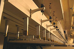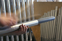 (c.f. Varieties of pipes). Both metal and wood can be used in making pipes (in reed pipes, though, only the resonator may be made of wood, the boot is always made of metal). What the pipe is intended to sound like determines the material it is made of, its shape and its scaling (i.e. the pipe's width). Each rank (i.e. each sound color) has its special design. As building the pipes is very complex and expensive and calls for special craftsmanship, many organbuilding companies today no longer have their own pipe shop but buy ready-made pipes or pipes made to order by specialized companies. Opinions differ on the question if and how far individuality and quality suffer from this. At any rate, there is no harm having the construction of both the organ and its pipes all in one hand :-) |