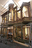 Putting up the upper floor of the case | Carved pipe shade | Hoisting the console to the gallery | The mounted console | Installing the facade pipes |