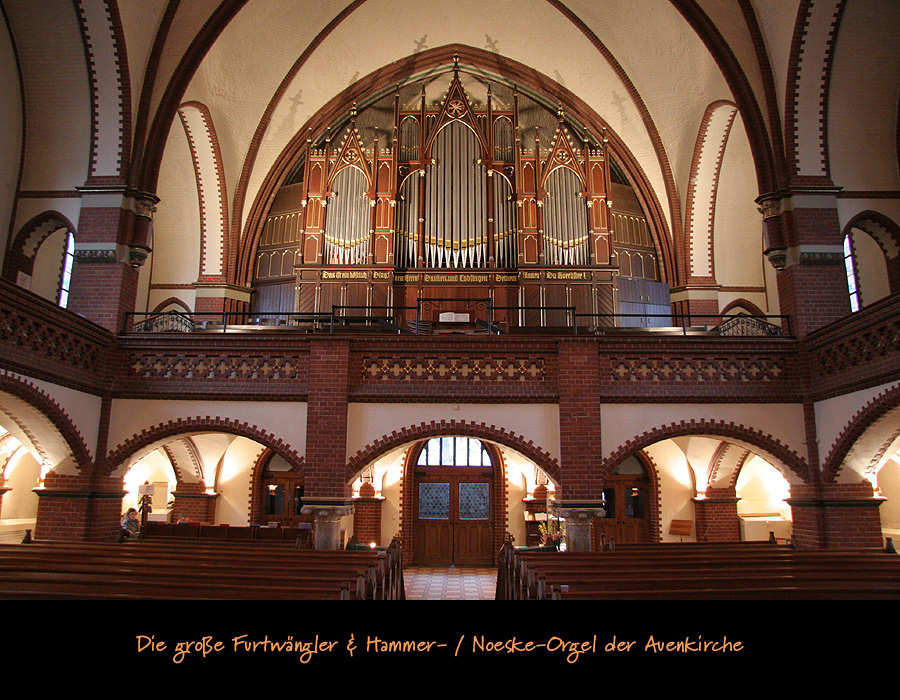 Any donations are highly welcome :-) The Auenkirche congregation would be very grateful for any donations. Donation receipts will be gladly provided! Contact: Kantorat der Auenkirche Wilhelmsaue 118a • D - 10715 Berlin • Germany Tel.: +49 30 / 40 50 45 34-0 (or -5) We just received the sad news that the long-time organist and curator of the Auenkirche Organ, Mr. Jörg Strodhoff, passed away on June 10th, 2013. There is no news yet as to what will become of the organ project. By the way, if you would build this organ from scrap today it would cost you about 2 million EUR / 2.6 million US$ |